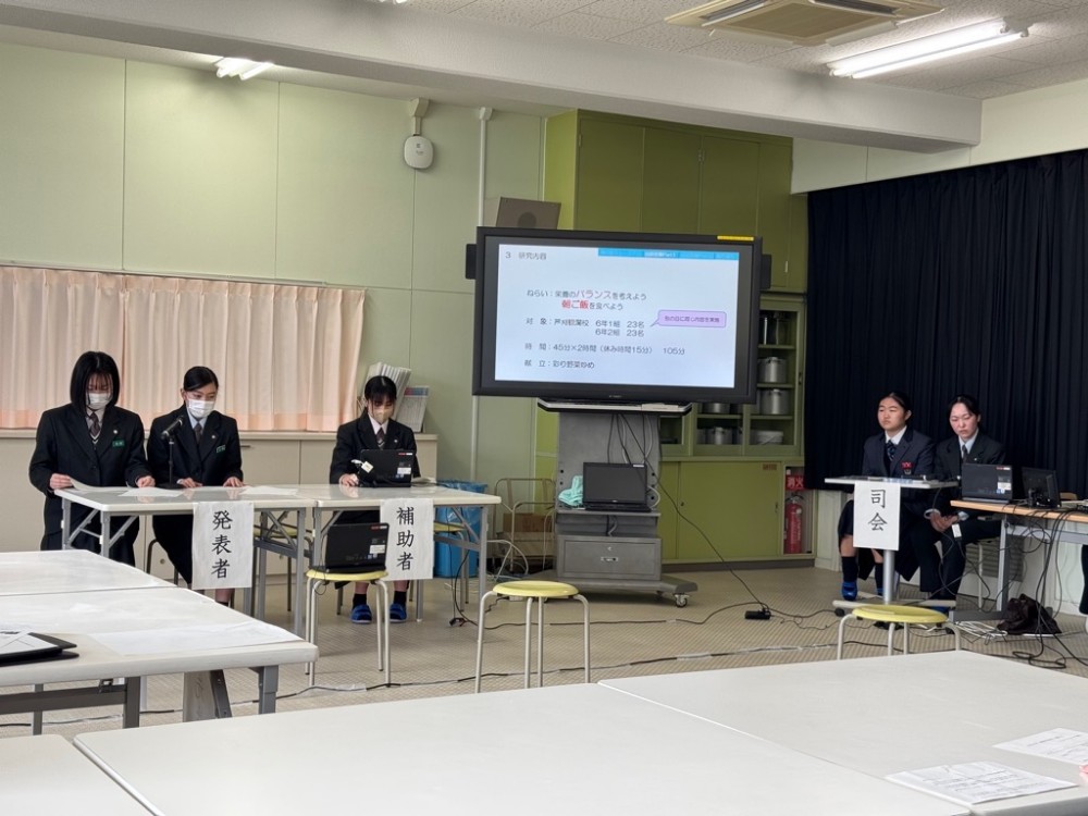 発表会は、代表で3グループが発表されました。テーマは、家庭に関する専門分野で生徒が3年間学んだことが反映されていました。