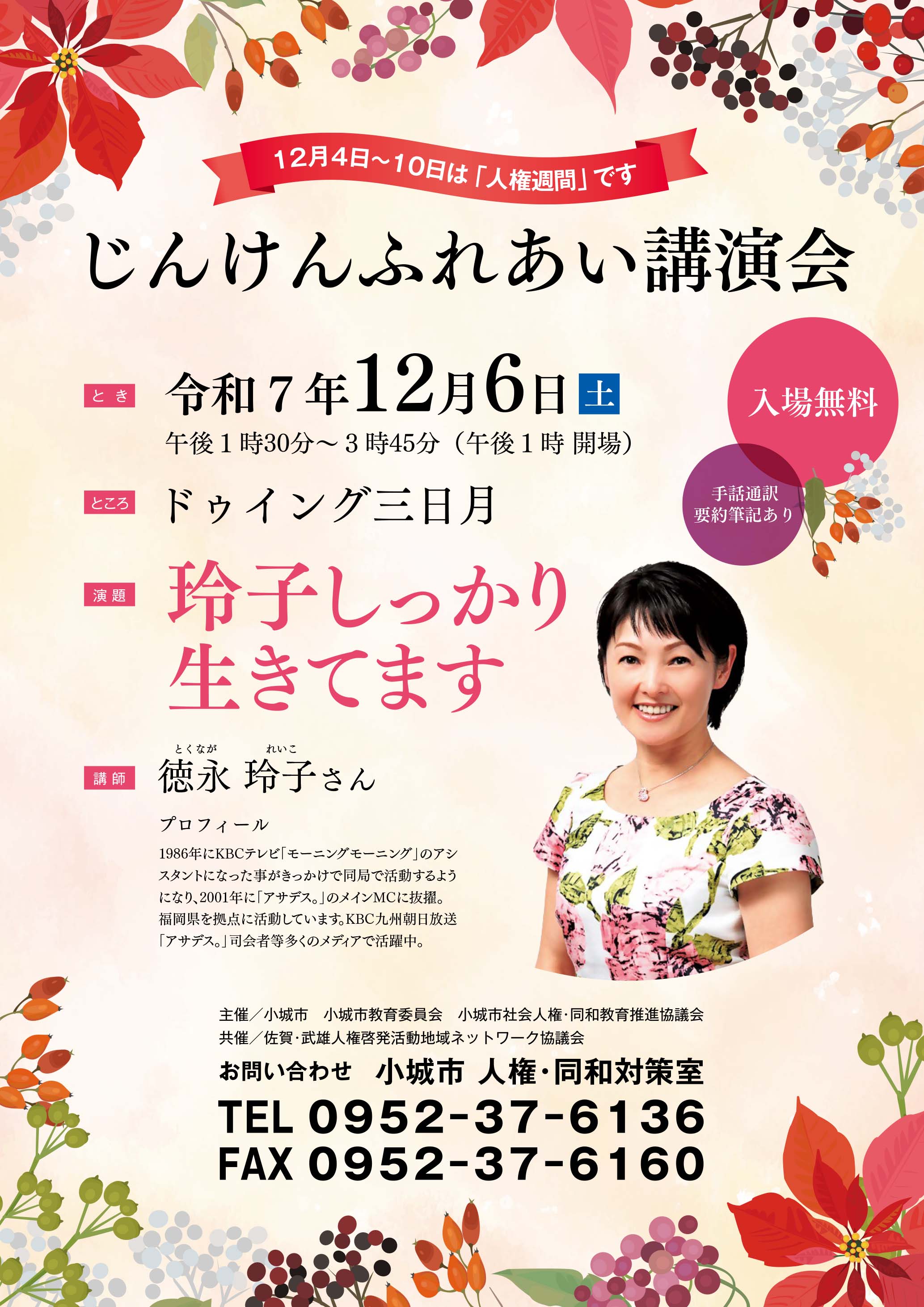 日時:令和7年12月6日(土曜日) 13時開場 13時30分開式・表彰式 14時講演