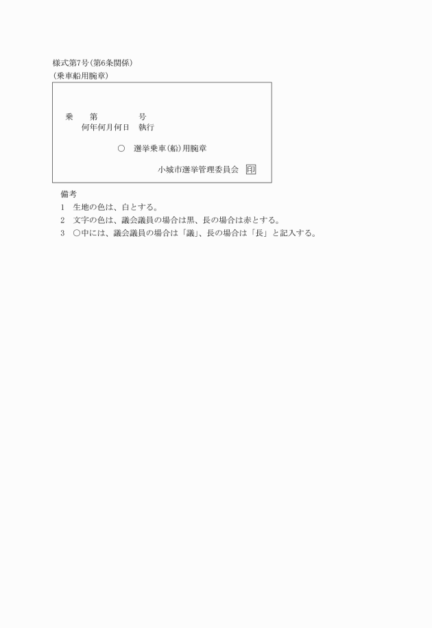 第5条 法第141条第5項の規定により候補者が主として選挙運動のために使用する自動車、船舶及び拡声機には、様式第6号の表示旗による表示をしなければならない。