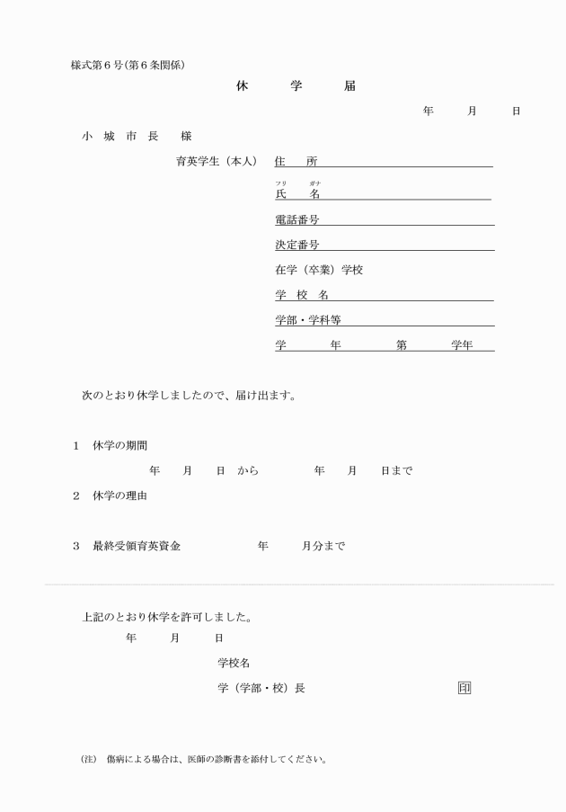 3 育英資金の返還猶予を受けようとする者は、育英資金返還猶予願(様式第14号)に、その事由を証明することのできる書類を添付して提出しなければならない。
