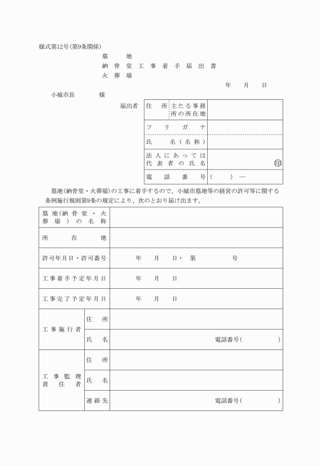 ○小城市墓地等の経営の許可等に関する条例施行規則