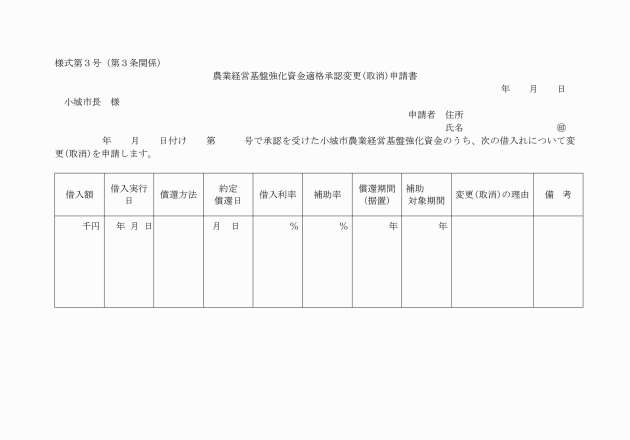第2条 補助金の交付を受けようとする者は、農業経営基盤強化資金適格承認申請書(様式第1号)を市長に提出しなければならない。