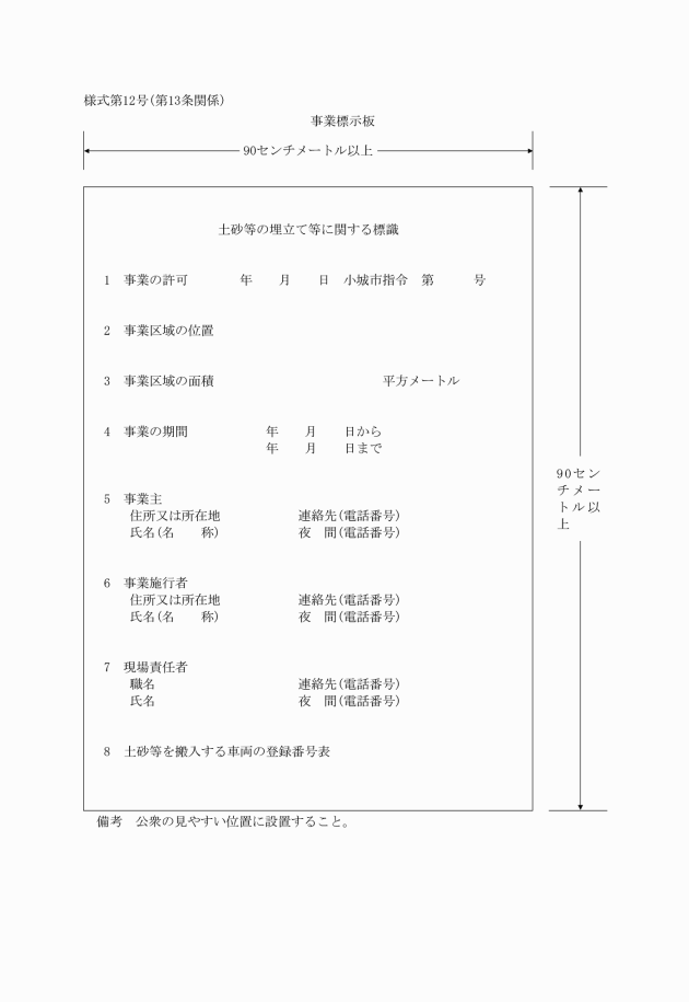 ○小城市土砂等の埋立等による災害の発生及び土壌の汚染の防止に関する条例施行規則