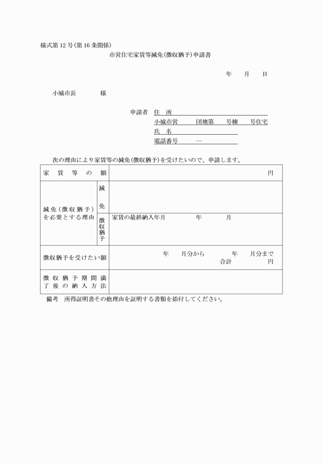 2 前項の申請書には、減免又は徴収の猶予を受けようとする理由を証する書類を添付しなければならない。