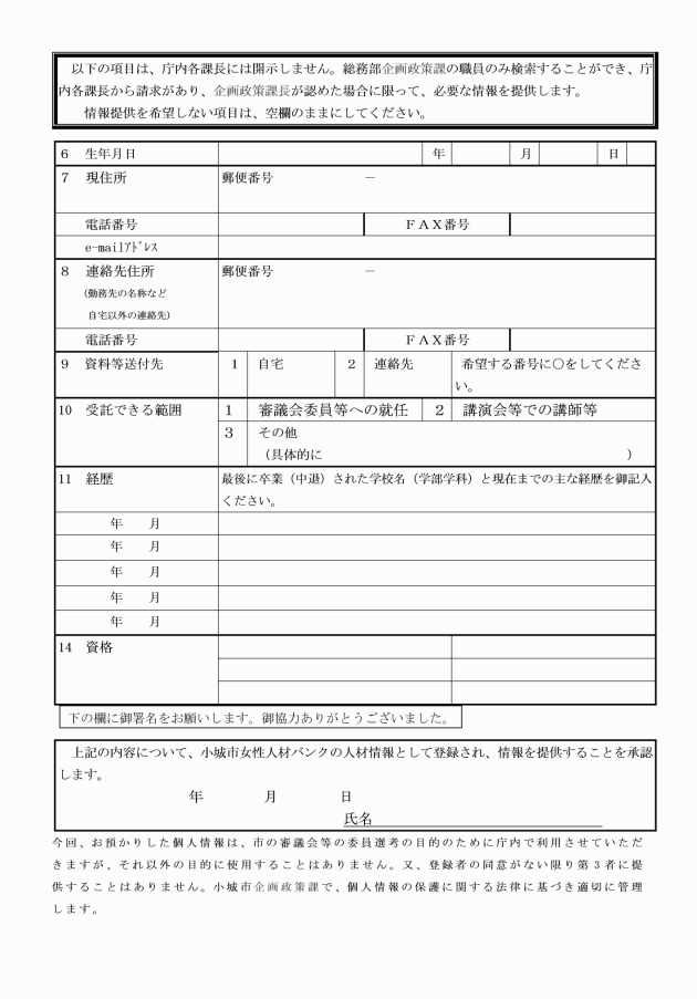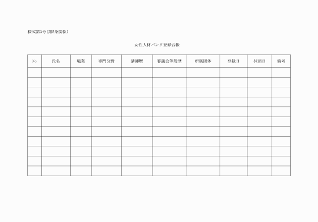 第4条 女性人材バンクへの登録を希望する者(以下「申込者」という。)は、女性人材バンク登録申込書(様式第1号。以下「申込書」という。)を市長に提出しなければならない。