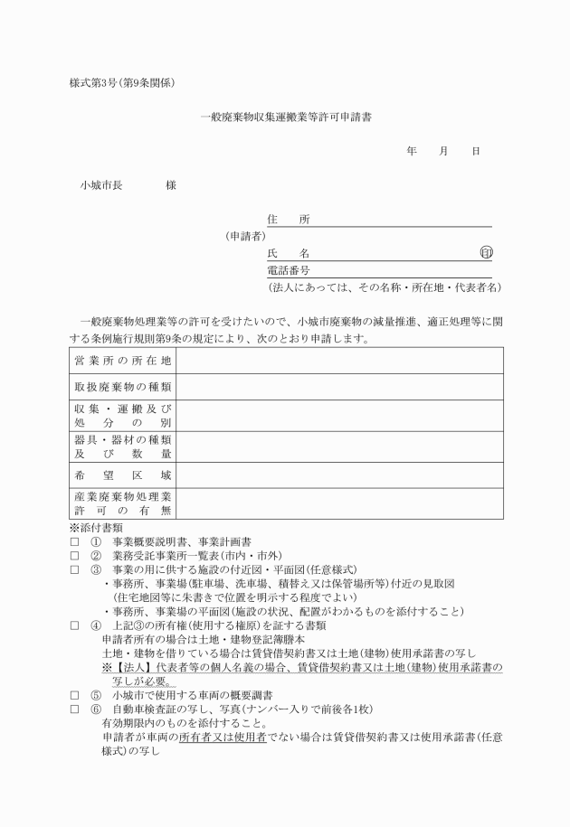 ○小城市廃棄物の減量推進、適正処理等に関する条例施行規則