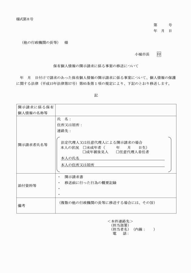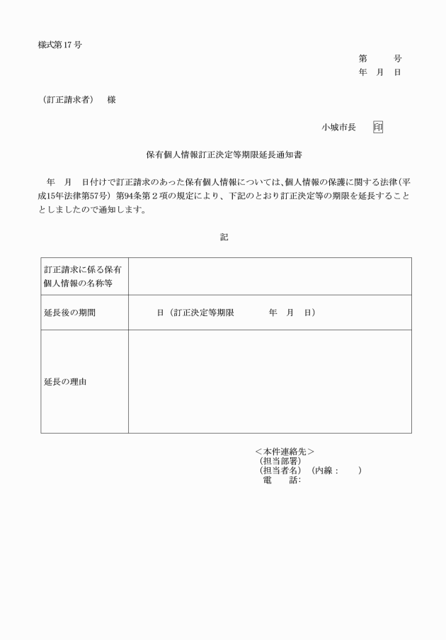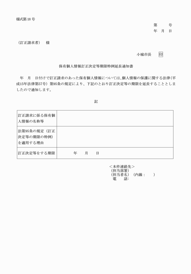 保有個人情報訂正決定等期限特例延長通知書 | |