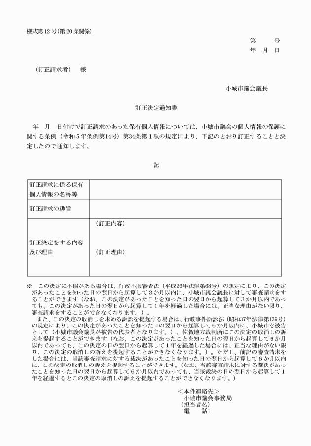 第1条 この規則は、小城市議会の個人情報の保護に関する条例(令和5年小城市条例第14号。以下「条例」という。)の施行に関し必要な事項を定めるものとする。